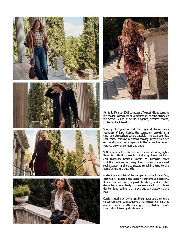 Combining a historic villa, a striking muse, and a cohesive visual narrative, Twinset delivers more than a campaign it offers a tribute to authentic elegance, crafted for today’s international, free-spirited woman.