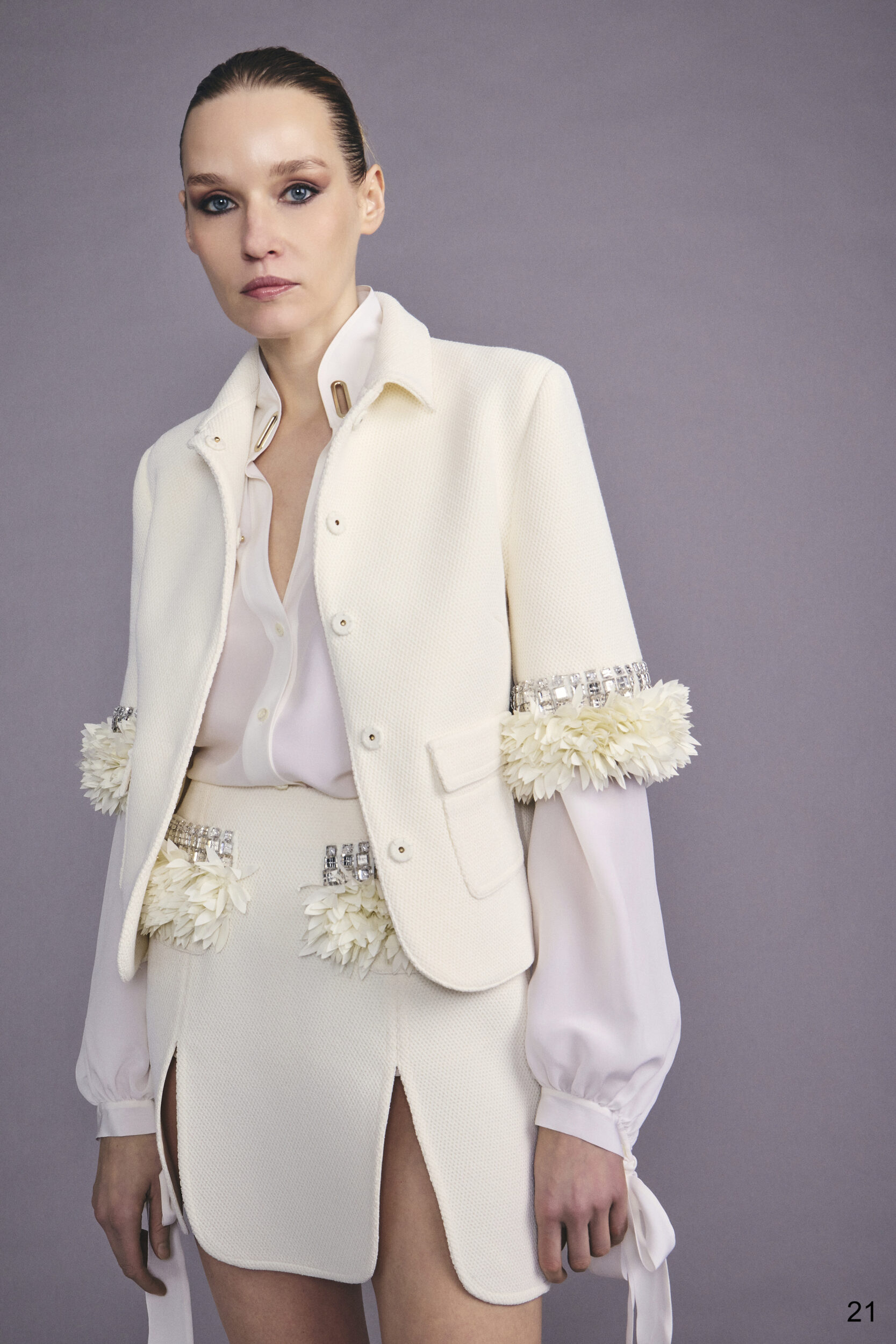Celestina Agostino unveils a collection conceived as a sensory exploration of fabrics and textures, evoking a woman’s story and the key moments of her day. From the oFice to a business lunch, from an evening dinner to the intimacy of a pajama night, each silhouette reflects a contemporary, multifaceted rhythm of life.