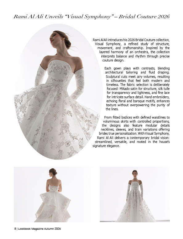 Rami Al Ali introduces his 2026 Bridal Couture collection, Visual Symphony, a refined study of structure, movement, and craftsmanship. Inspired by the layered harmony of an orchestra, the collection interprets balance and rhythm through precise couture design.
